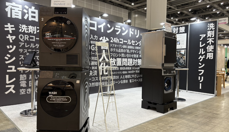 ウォッシュプラスコンフォートは、全国にコインランドリーを展開する株式会社wash-plusが、ホテル・旅館に向けて開発した宿泊施設専用のランドリーです。洗剤を一切使わない特許技術搭載の洗濯機と、IoTを活用したスマートランドリーシステムでホテルランドリーに関する課題を解決。「洗う以上のよろこびを」提供する洗濯体験と、節水・節電・クリーンな排水によるSDGs貢献により、ホテルの価値の一部になるランドリーを目指しています。